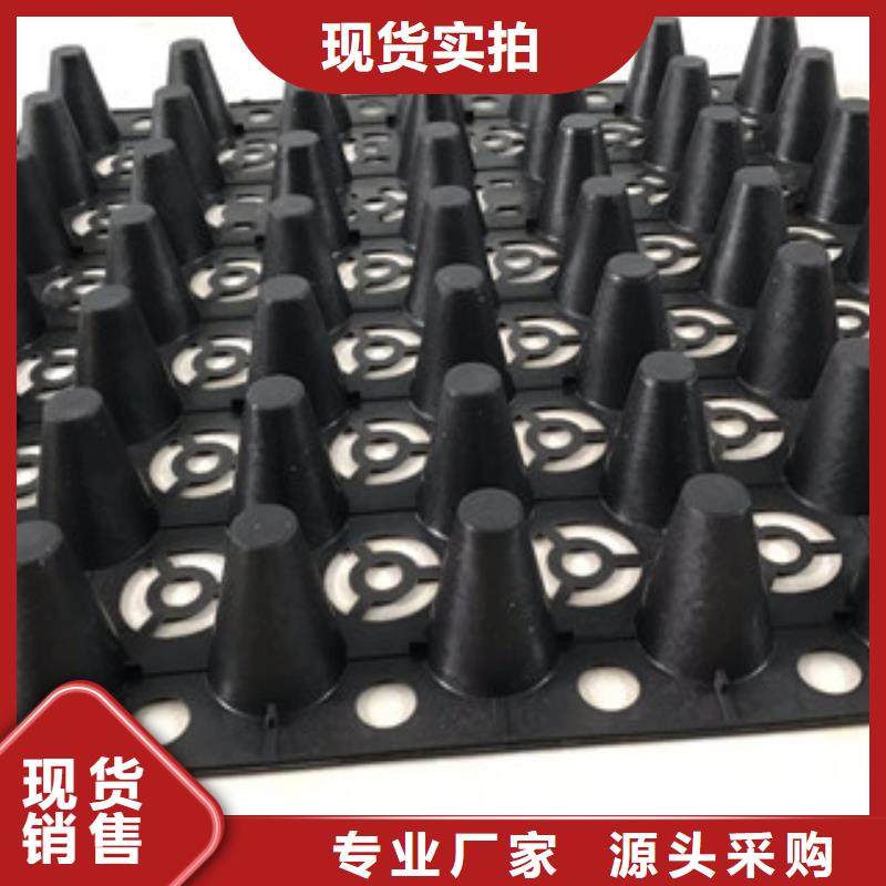 蓄排水板在使用时凸点向下,上面铺设无纺布,具有蓄水的功能。也可在蓄排水板的下面再铺设一层土工膜,起到耐根穿刺的作用