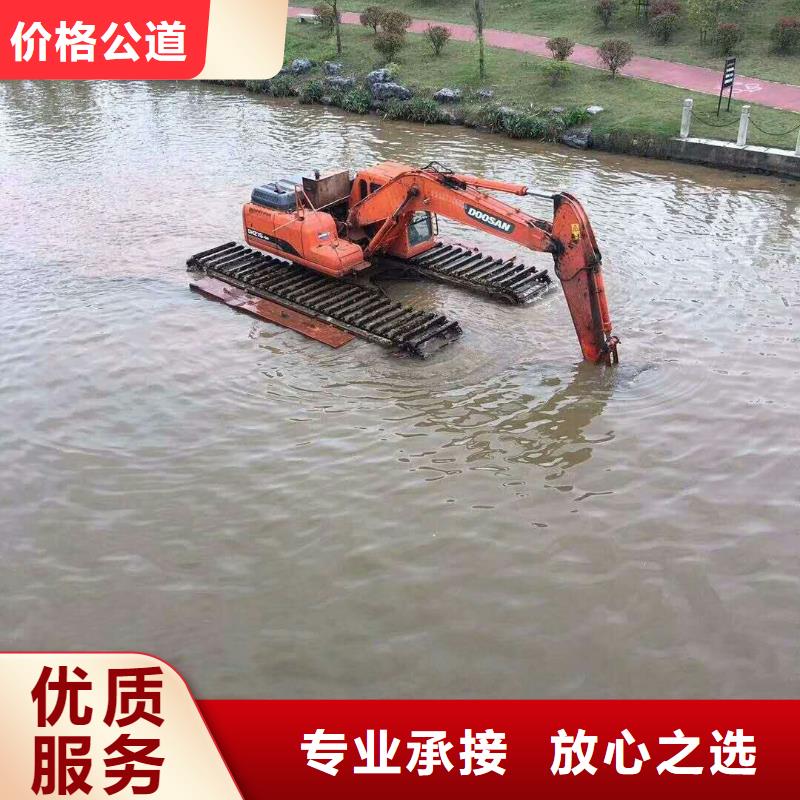 陕西宝鸡水上挖掘机租赁湿地挖掘机 万一挖掘机陷入泥中,也不要着急。千万不要试图用爬坡一套方法爬出来,那样只会越陷越深。解救的方法有很多:如果陷得不是很深,就先自己把两条履带中间挖空再试试。如果还出不来,就先试试淤泥到底有多深,如果不是很深,就直接把前方的淤泥都挖开,自己为自己开路,慢慢往岸边坚硬地面靠近。如果淤泥无限深,那就是能租几块铁板或是路基板来,横着压到履带下面,就能轻松脱困。水陆两用(两栖)挖掘机是一种适用于陆地、沼泽软地面及浅水作业环境的多用途挖掘机。 液压传动系统通过液压泵将发动机的动力传递给液压马达、液压缸等执行元件,推动工作装置动作,从而完成各种作业该产品被广泛而好地应用于水利工程、城乡建设中的河道与湖泊的清淤、湿地沼泽与滩涂的资源开发和环境整治挖掘作业。